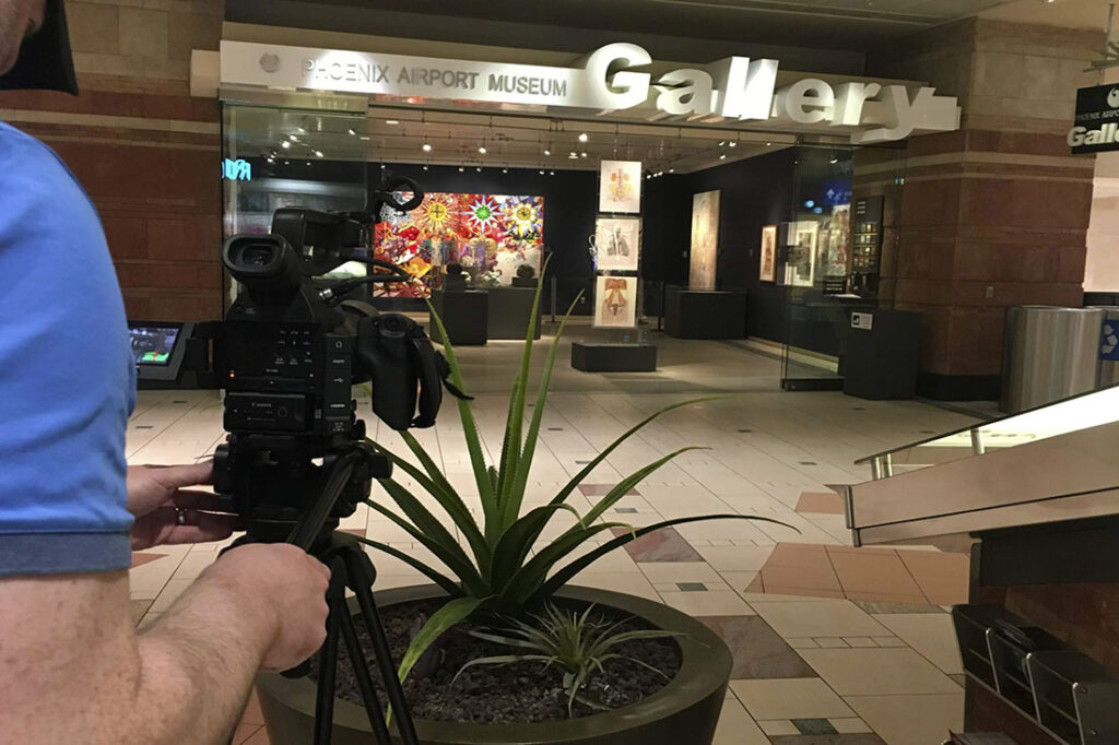 Airports themselves also are evolving. During our tour years ago of Phoenix Sky Harbor International Airport, someone explained how the arrival of PHX Sky Train® and upscale restaurants transformed the airport into a date-night destination option. Then we recently learned about the Phoenix Airport Museum and its impressive art collection. We spent four days shooting video of the collection for an upcoming conference. We watched passengers stop to browse and photograph the art. We met two women who visited the airport for the sole purpose of viewing the various pieces. The video shoots also provided us an opportunity to hear stories about the art and a behind-the-scenes look at memorabilia in storage such as old photographs, Delta playing cards and carrying bags from Hughes Airwest and Bonanza Air Lines.